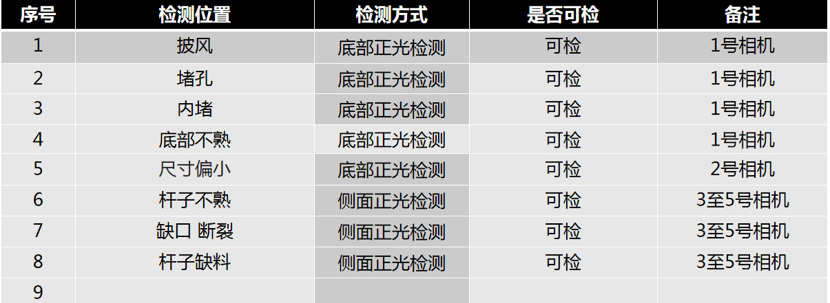 注明:以上檢測(cè)項(xiàng)目,均需在影像下清晰可見(jiàn)才能檢測(cè)。