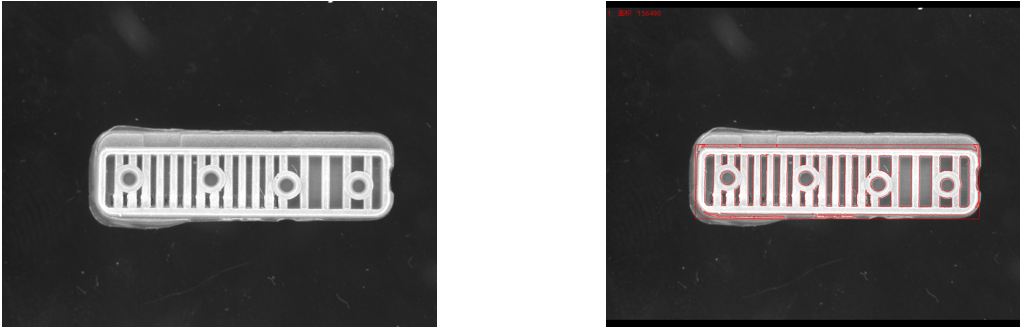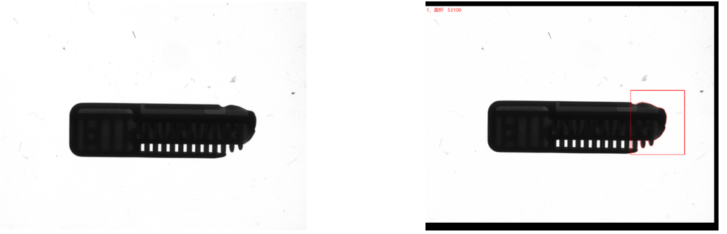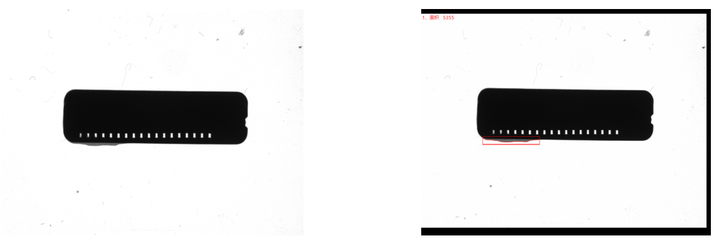 相機(jī)1、2頂部背光檢測不良品分析圖:NG 結(jié)論:可檢 檢測特征:缺料
