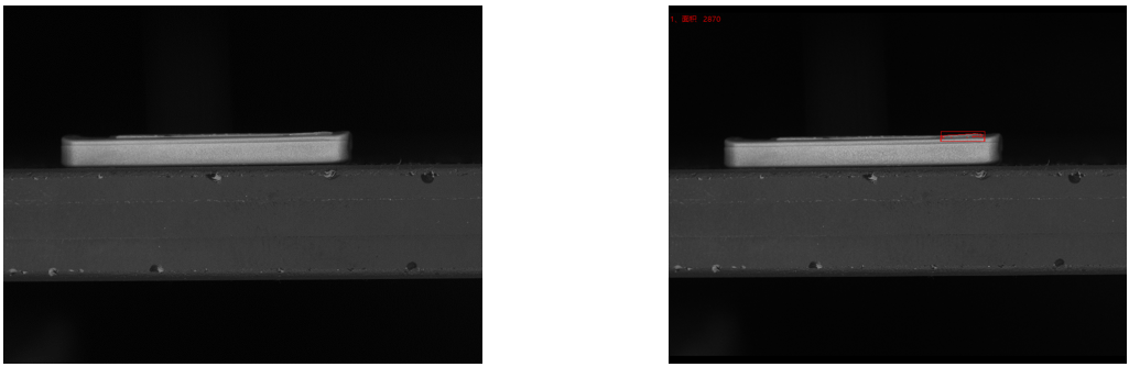 相機(jī)1、2頂部背光檢測不良品分析圖:NG 結(jié)論:可檢 檢測特征:壓扁