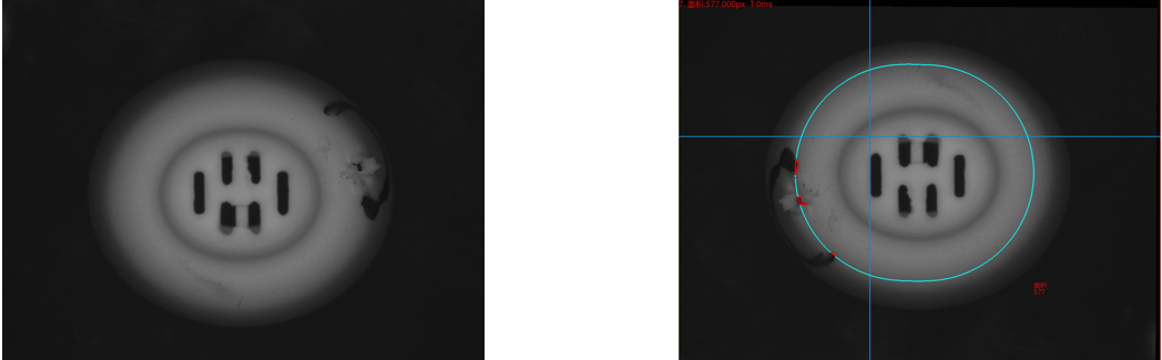 相機(jī)2、頂部正光檢測不良品分析圖:NG 不良特征:柱子缺口