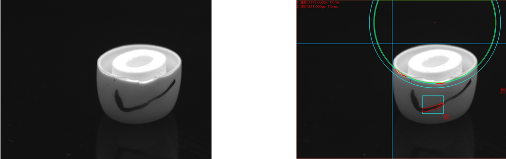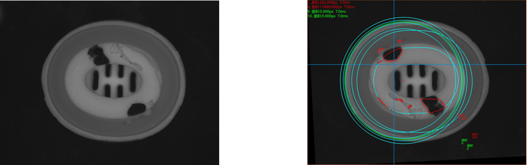 相機(jī)1、底部正光檢測不良品分析圖:NG 不良特征:粘料