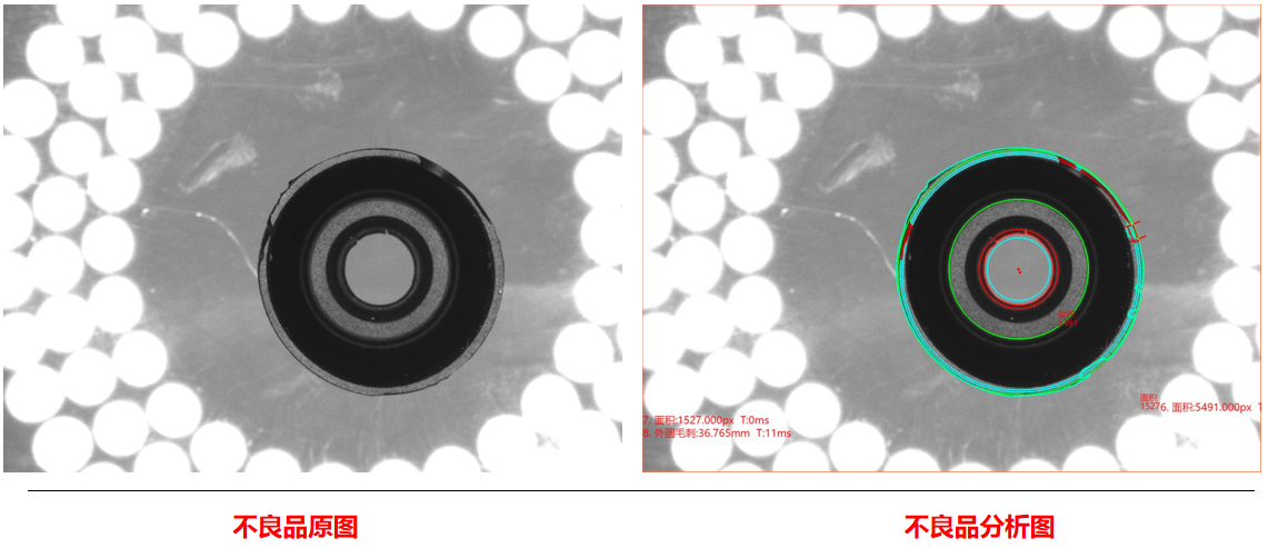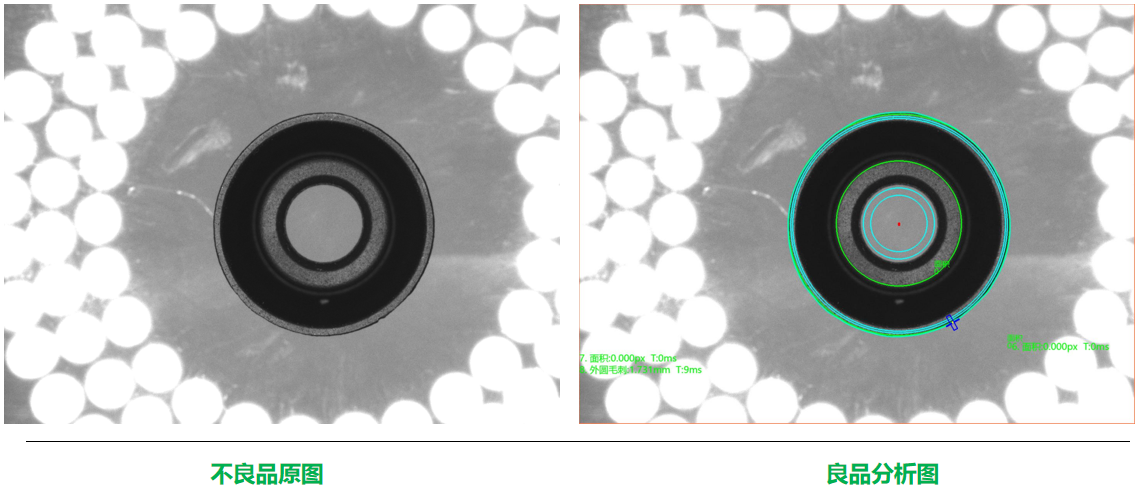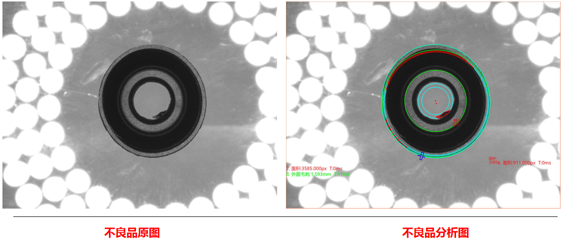 相機1:頂部正光檢測不良品分析圖:NG 不良特征:毛邊